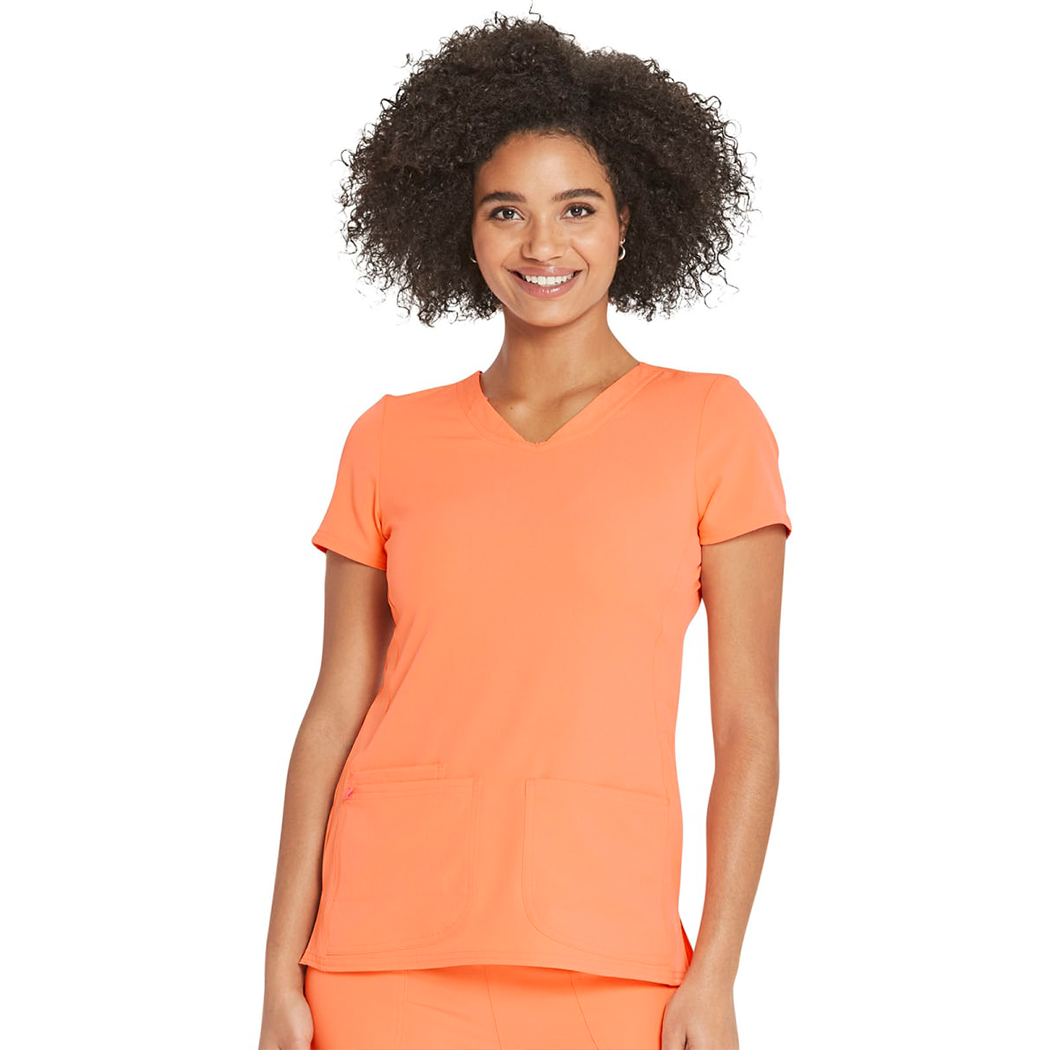La colección Break On Through, esta blusa médica pulida es a la vez fresca y elegante. Un lazo elástico y un ojal para los auriculares animan los días largos, mientras que los detalles cosidos añaden un diseño de gran interés. La innovadora tela dobby elástica en cuatro direcciones es liviana pero duradera y brinda un uso sin preocupaciones. Respire más fácilmente y siéntase más fresco con las propiedades de absorción de la humedad que alejan la humedad de la piel para que se sienta fresco, seco y cómodo incluso durante el turno de trabajo más ajetreado.